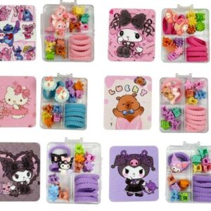 Набір 31119 крабіки кольорові малі/2 види гумок в коробці 1,5*1,5см/ діам 2,5см