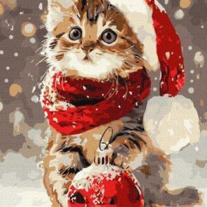 Картина по номерах 6845 “Кошеня і новорічна прикраса” 30х40см