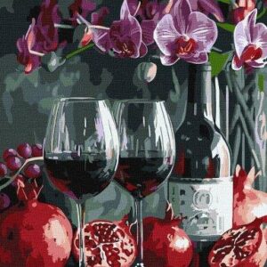Картина по номерах 5696 “Вино та орхідеї” 30х40см