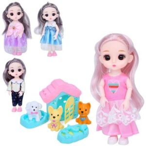 Лялька 1224-5-6-7-8-9 WS 15см шарнірна собачки 3шт будка мікс видів в куль 16-21-4см -/108