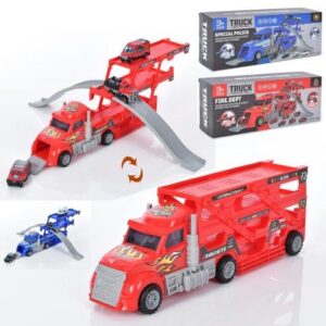 Машина 905 P-A трейлер 35см 2в1 контейнер-гараж/кран машинки 2шт 6см в коробці 39-15,5-11см -/18