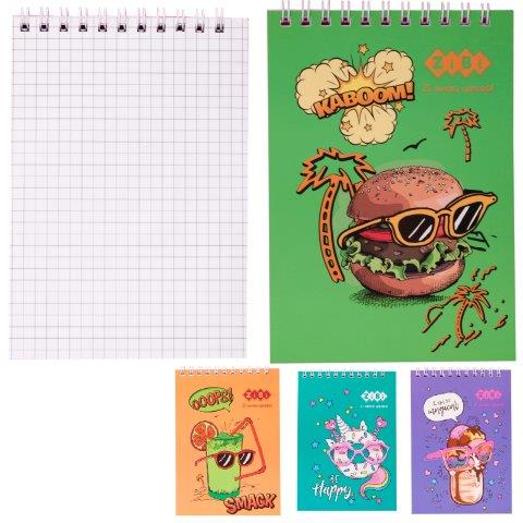 Блокнот 12150 на пружині зверху FUNNY SNACKS, А-6, 40 арк., картонна обкладинка, KIDS Line, асорті кількість