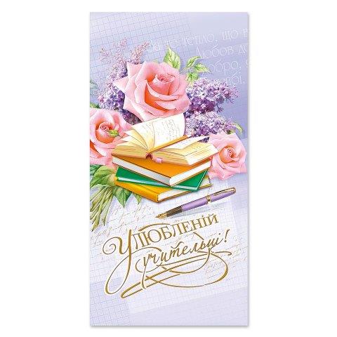 Листівка 4571 Е з брокатом та тисненням з конвертом Дорогій Учительці кількість
