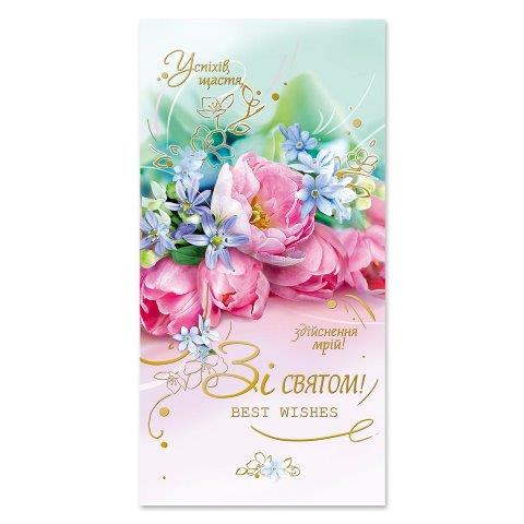 Листівка 4913 Е з брокатом та тисненням з конвертом