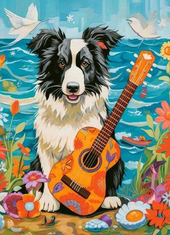 Пазли 100 В-111268 Коллі, гітара та море