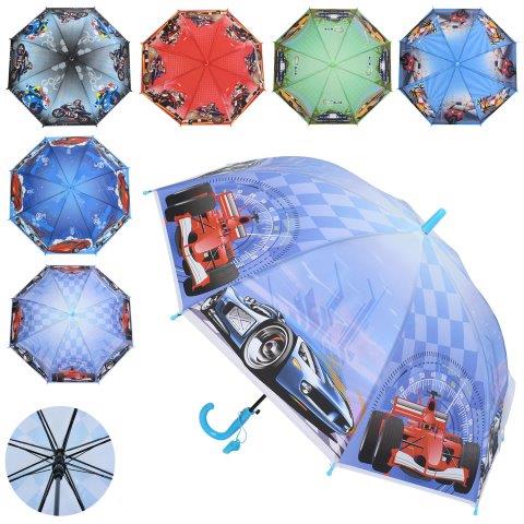 Парасолька 5798 MK дитяча довжина 65,5см тростина 60,5см діаметр 83см спиця 48см клейонка свисток мікс видів(транспорт) в куль -/60 кількість
