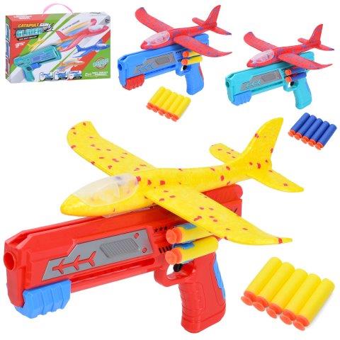 Пістолет 77917-11 24,5см літак 23см пінопласт на запуску м’які кулі-присоски 5шт мікс кольорів в кор 29-18,5-5см -/48