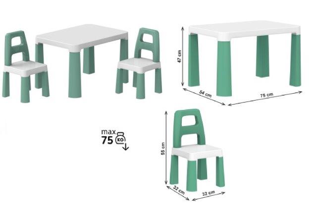Стіл дитячий 0440 з двома стільцями біло-ментоловий ТехноK -/1