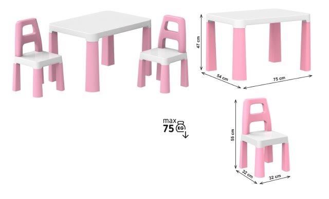 Стіл дитячий 0457 з двома стільцями біло-рожевий ТехноK -/1