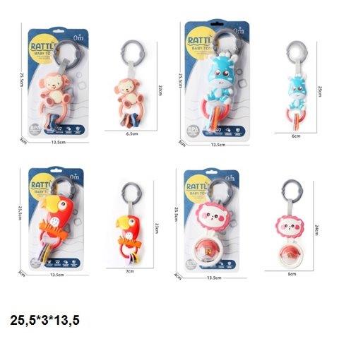 Погремушка 688-23/28/30/31 підвіска тваринки з прорізувачем 4види на пл 25,5*3*13,5 96/192 кількість